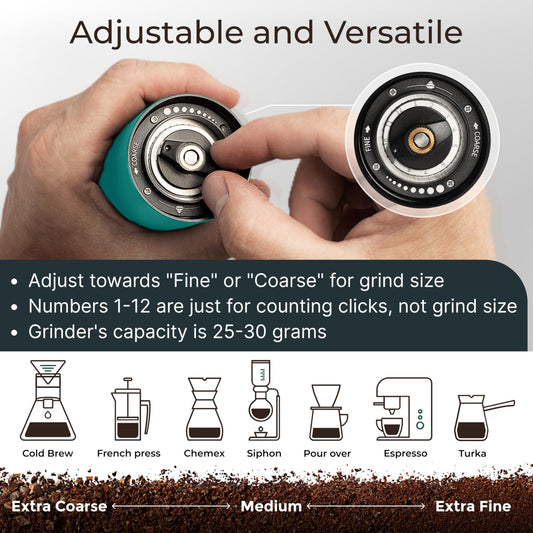 Manual Coffee Grinder - Aqua Sky Stainless Steel Conical Burr