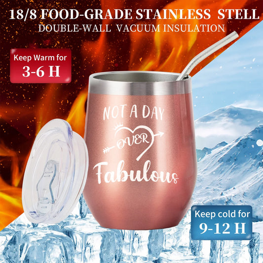 Stainless Steel Wine Tumblers - Set of 6 with Lids & Straws